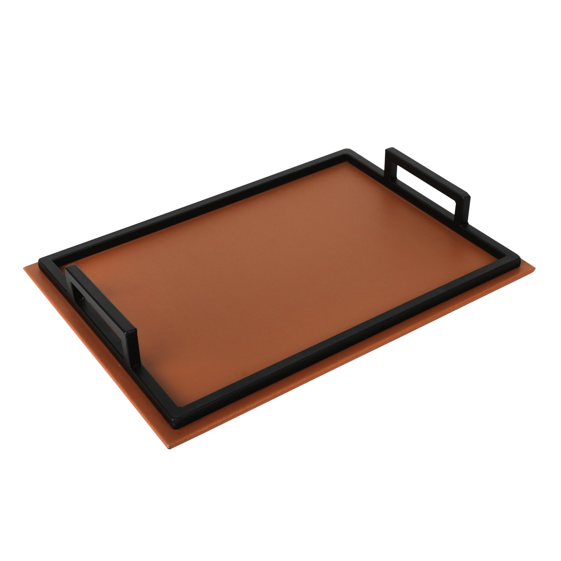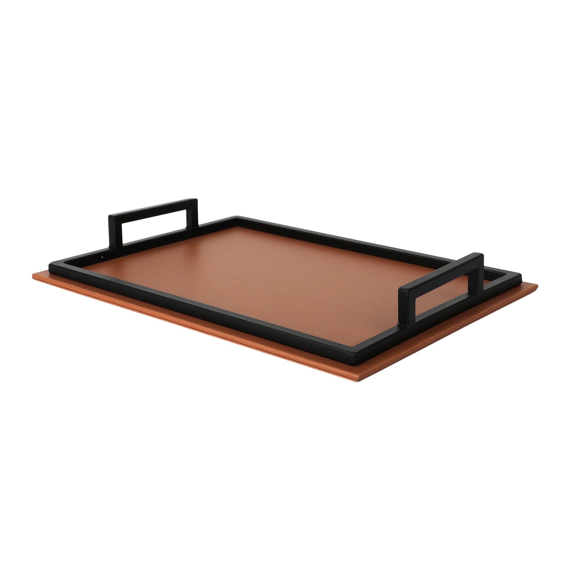 The elegant and artistic design of this stunning piece make it a truly ornate addition for any living space. It's dual tone tan tray & black handles, is a perfect mix of usability & design. Works well as a serving tray or as an accent piece.