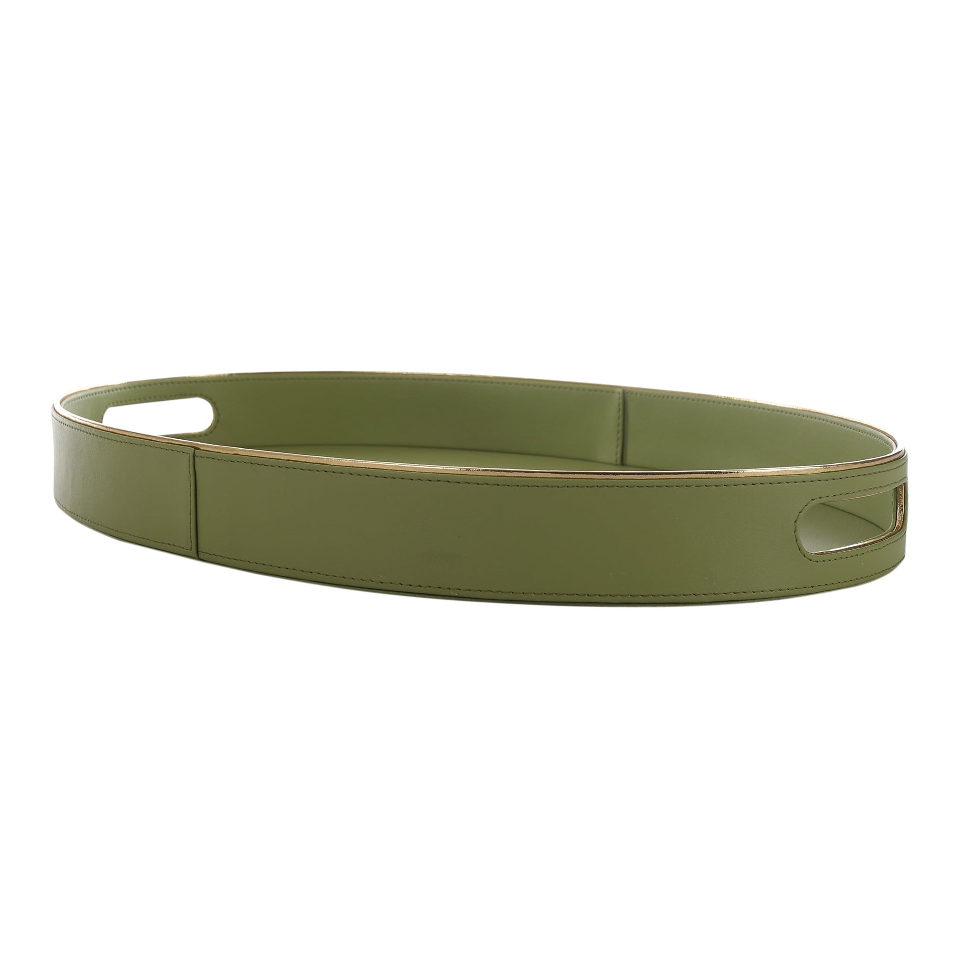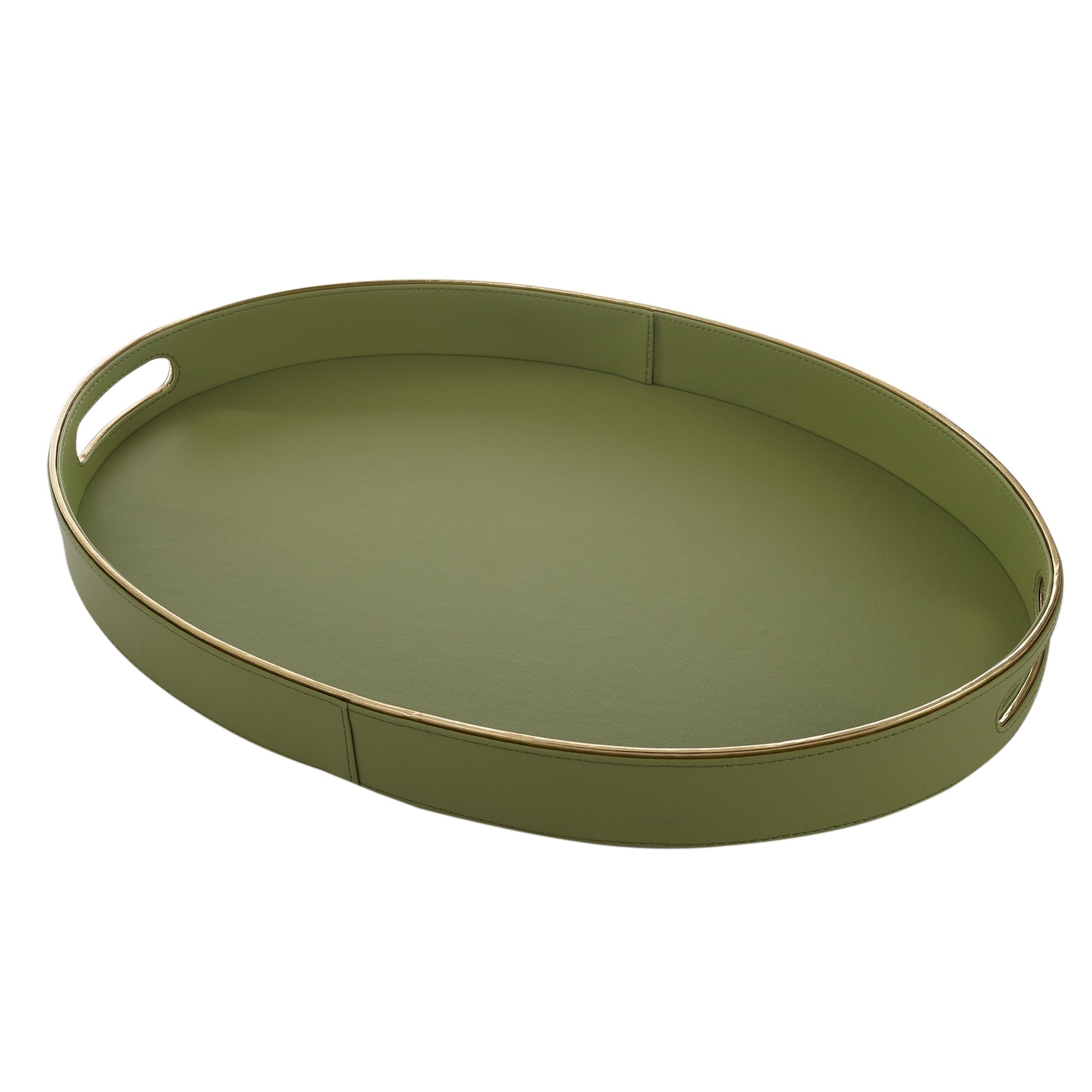 The clean & save lines of this dual finish serving tray make it an elegant addition for any living space. It's dual - olive green & gold finish make it an eclectic marriage of design and usability. The sturdy handles make it great a serving tray & works well to serve any items you may desire, or as a paper tray.