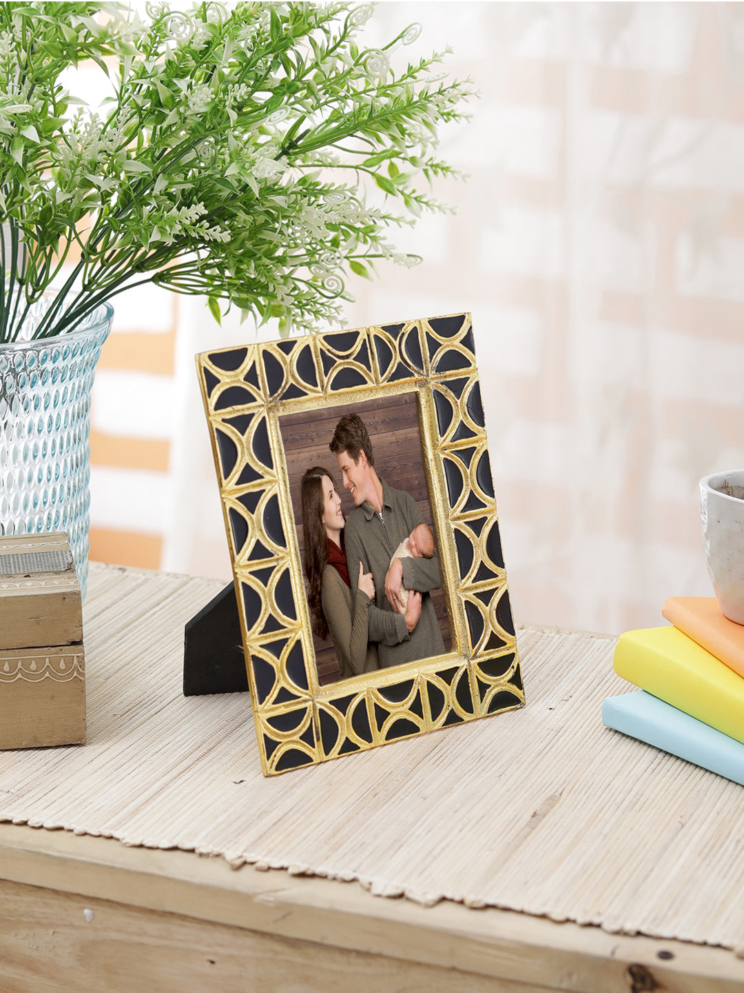 This beautiful dual-tone photo frame is a stunning accent for any living space. The black and silver finish on metal makes the frame stand out and adds class to your house or office. Use it to store memories and add charm by adding it to any table, shelf, living space or office space.