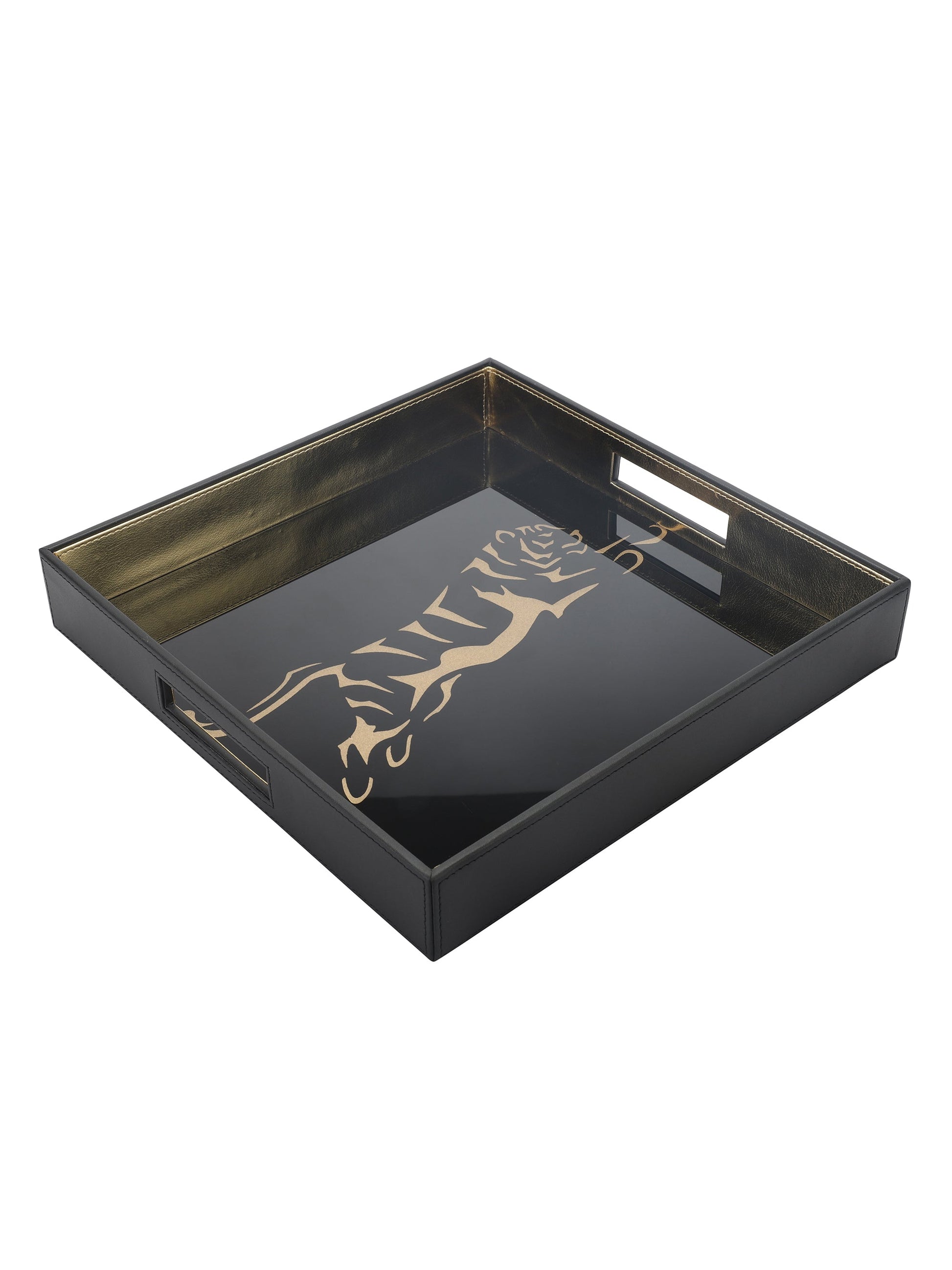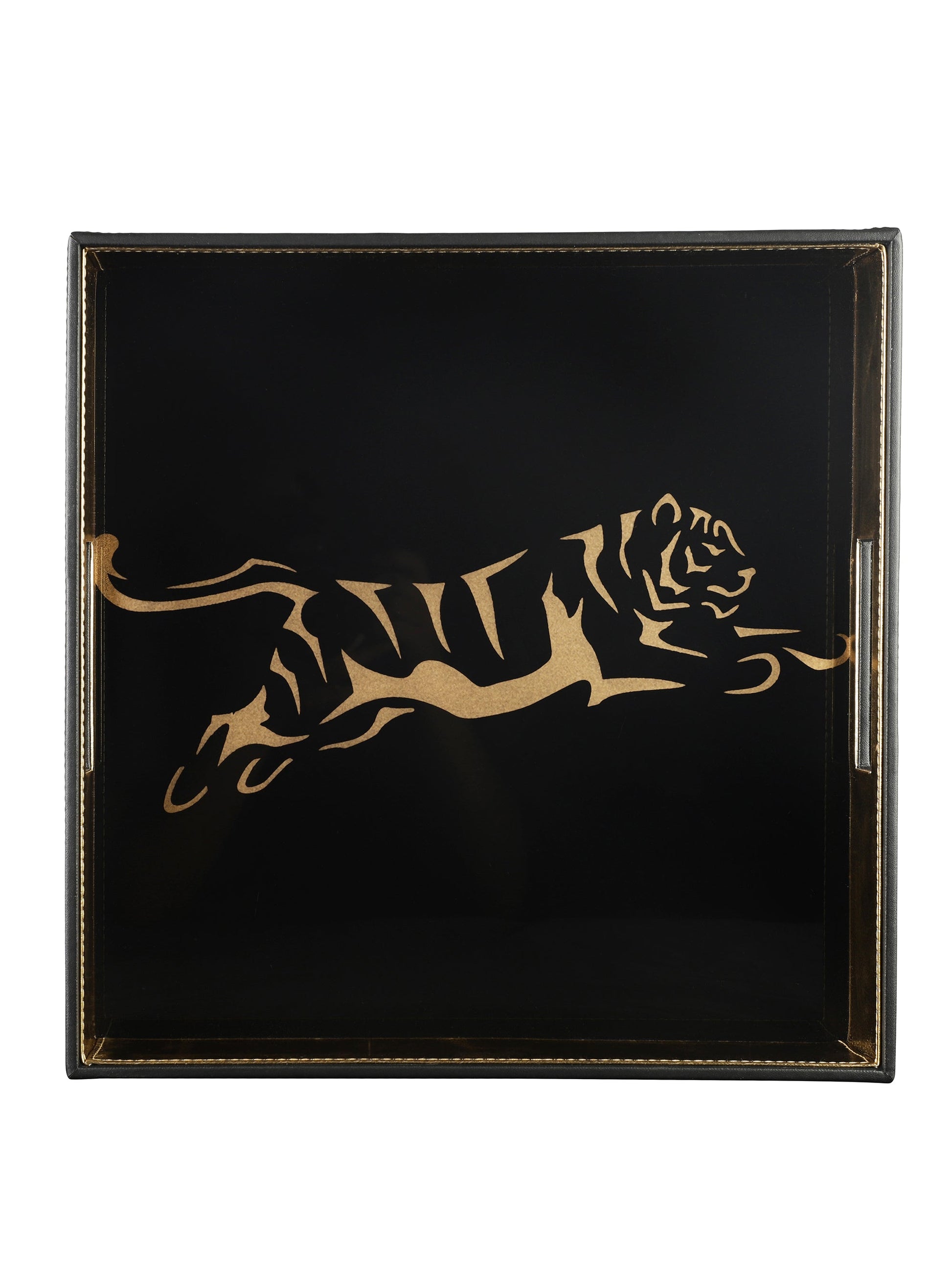 The artistic & eye-catching design of this stunning piece make it a truly ornate addition for any living space. It's delicate handcrafted Gold Tiger pattern on glass really make it stand out. Works well as a serving tray or as an accent piece.