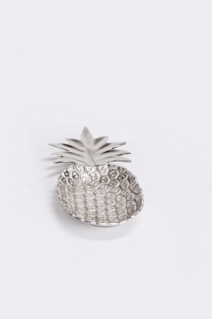Inspired by the all season favourite fruit 'Pineapple', this platter is a fun & trendy addition to your living space. Use it to store dry fruits or nuts or also as an accent piece, this platter is made of Aluminium and it comes in silver colour.