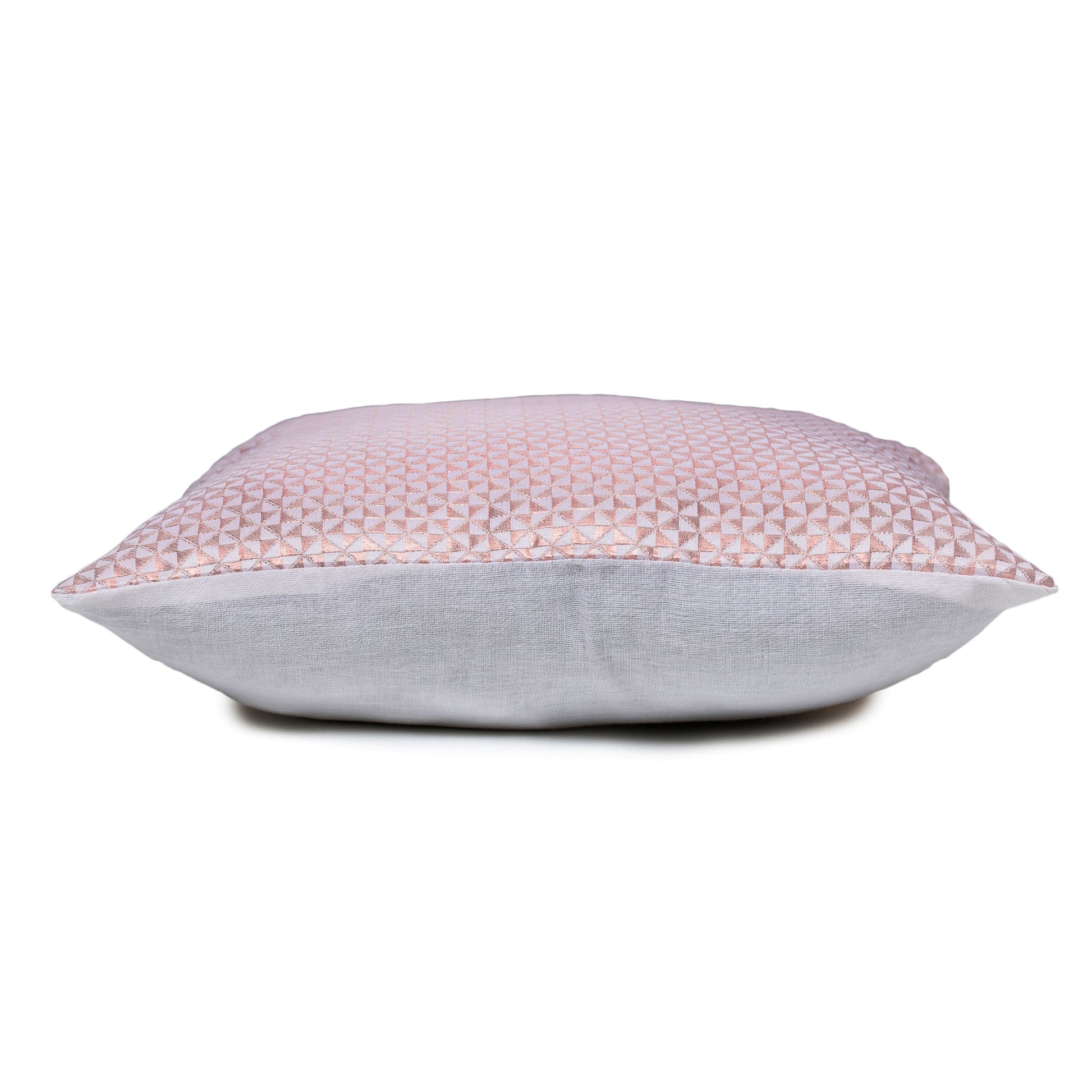 Add elegance & charm as you introduce the 'Riva' Peach & Silver Cushion from the house of Sammsara. The intricate design of this embroidered cushion features a handcrafted peach & silver box design.
