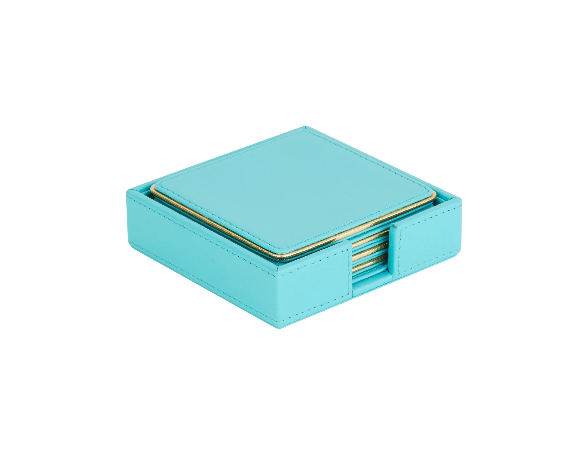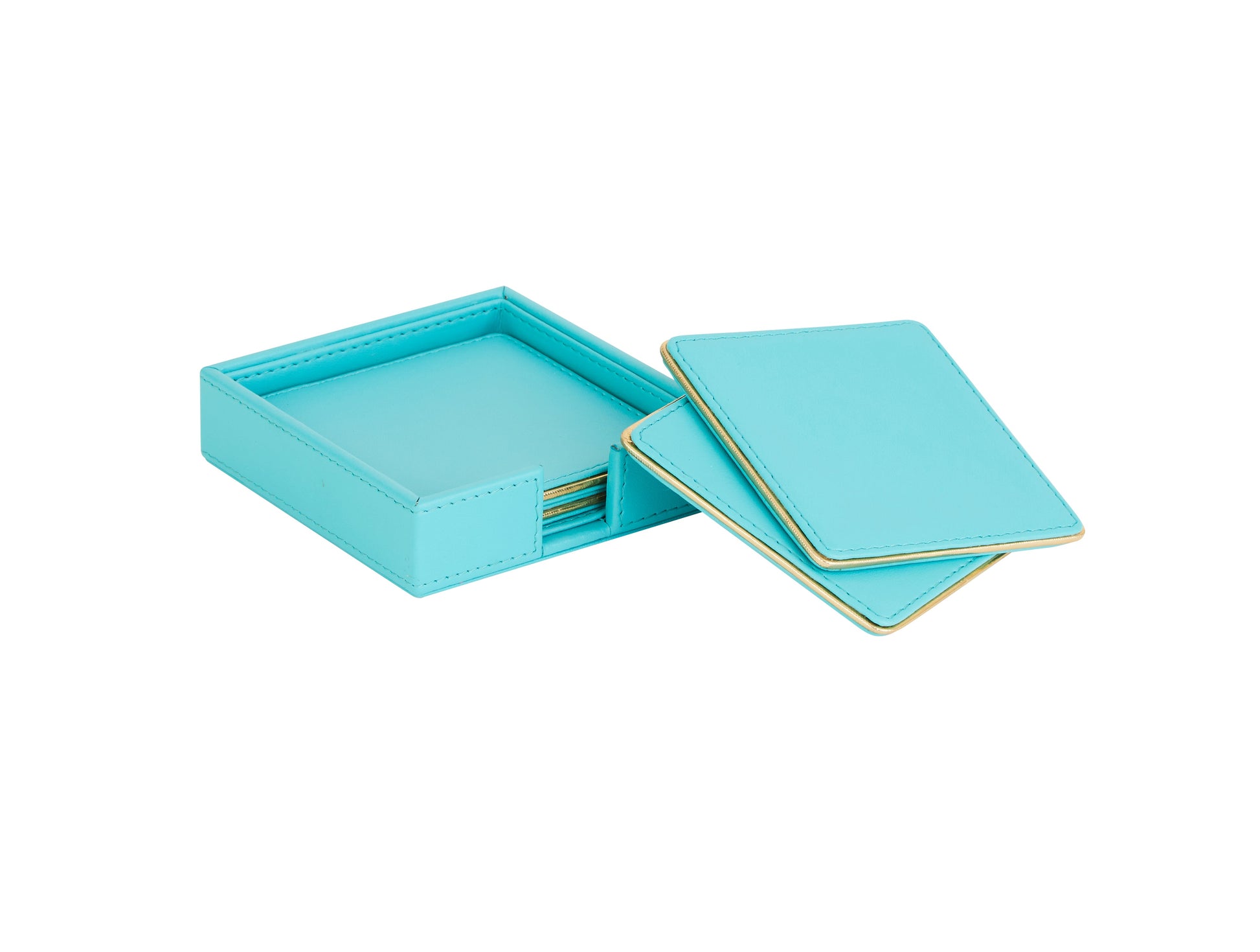 Sapphire Blue & Gold PU Leather Coaster Set of 4
