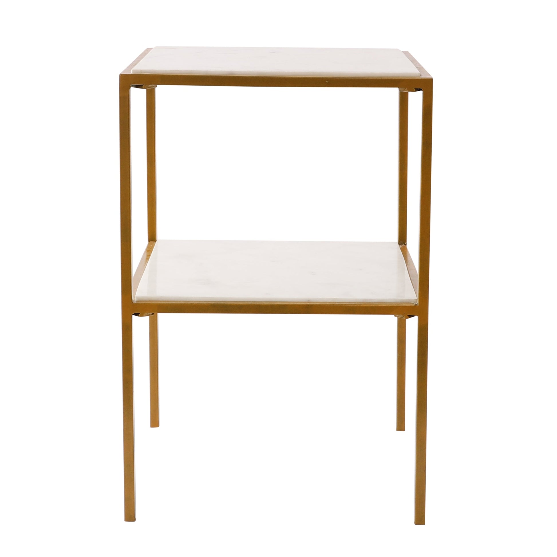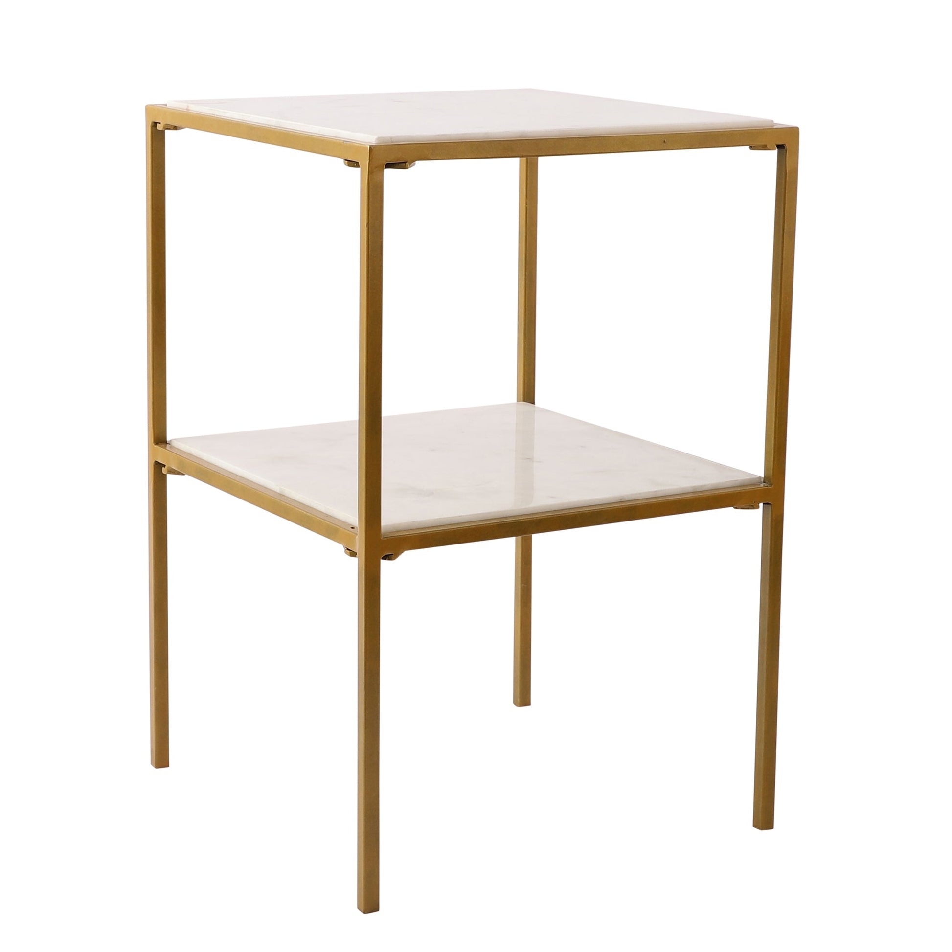 Add character & style to your living space with the 'Sia' Dual Marble Accent Table. The dual tone gold & white finish of this table will enhance the look & feel of any room. Intricately hand crafted, this table is the perfect size to put decorative accents or a vase.