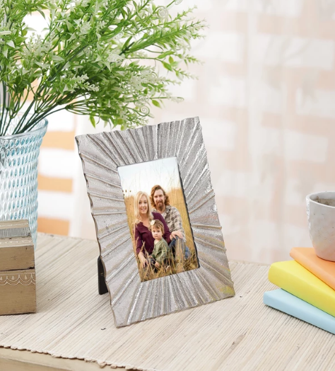This beautiful Silver-Tone photo frame is a stunning accent for any living space. The silver finish on metal makes the frame stand out and adds class to your house or office. Use it to store memories and add charm by adding it to any table, shelf, living space or office space.