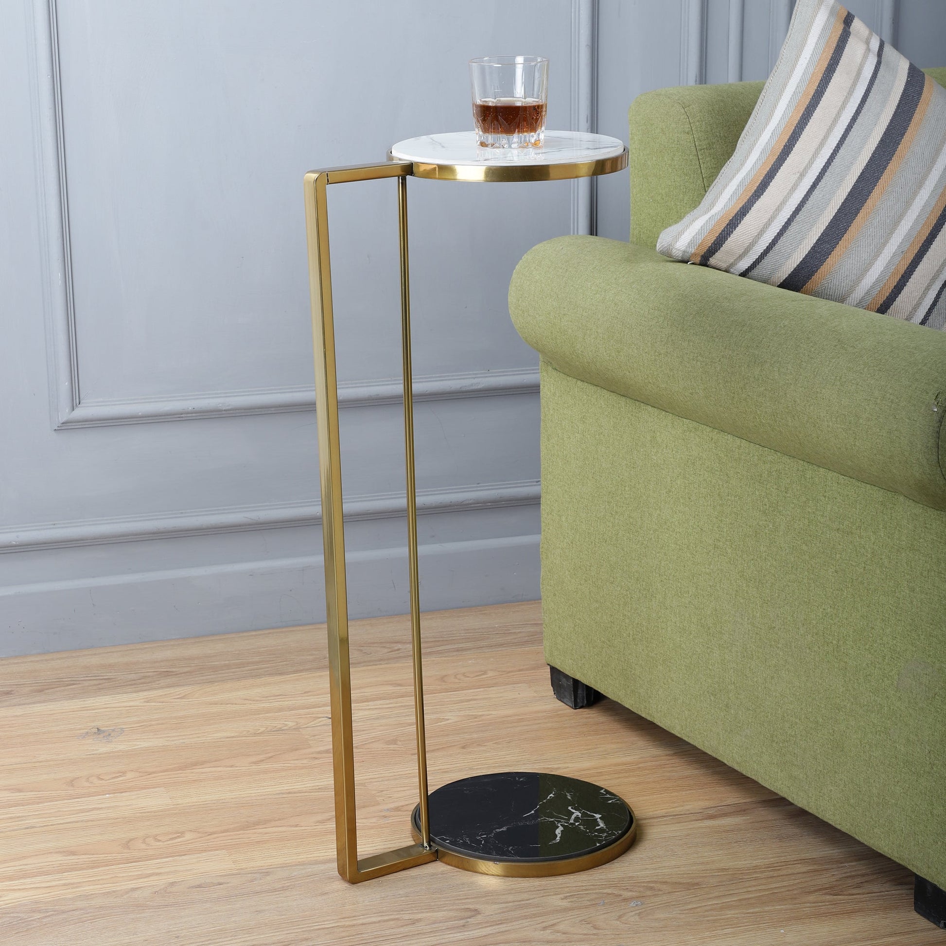 Add character & style to your living space with the 'Surrey' Drink Table. The triple tone gold, black & white finish of this table will enhance the look & feel of any room. Intricately hand crafted, this table is the perfect size to put a drink or a vase.