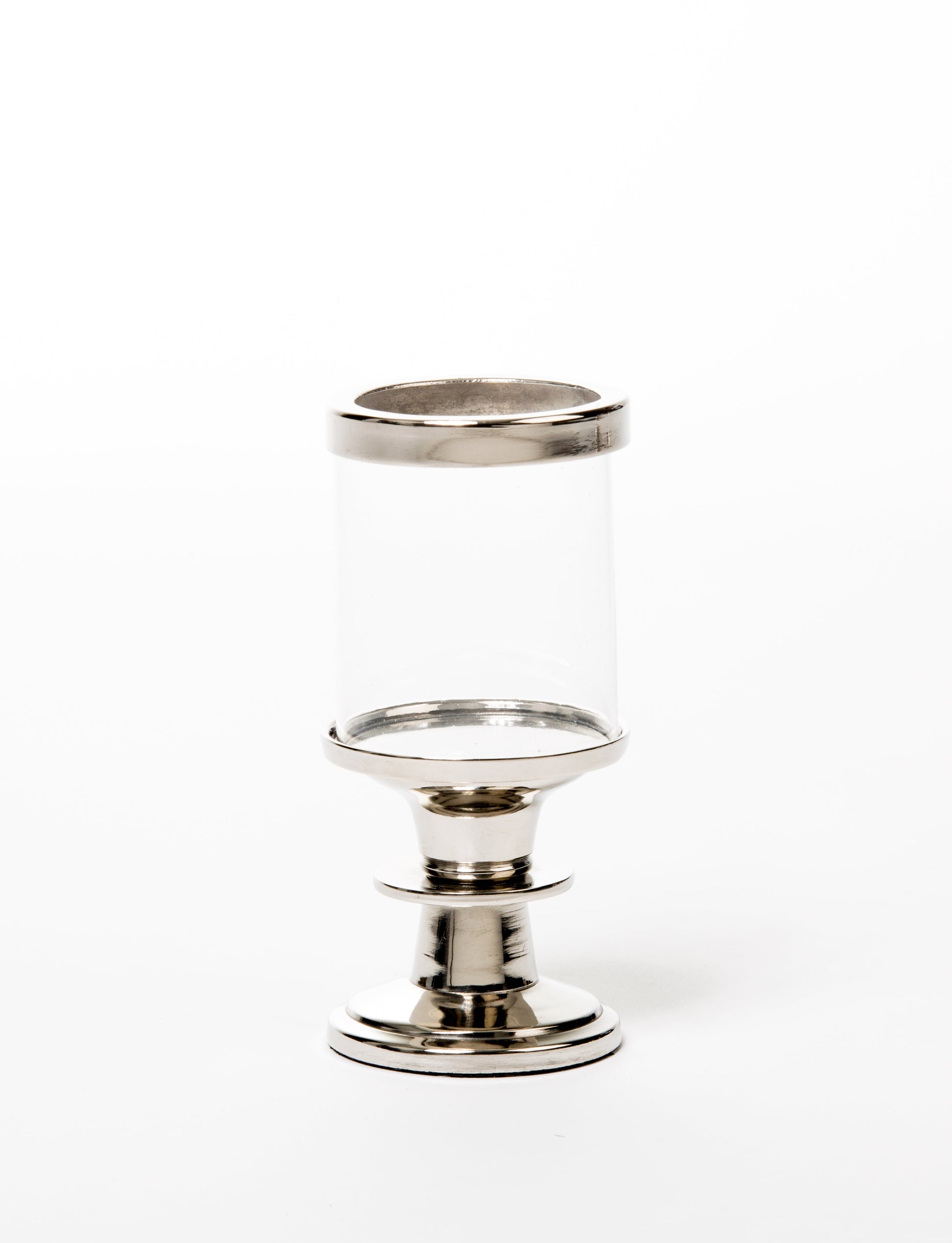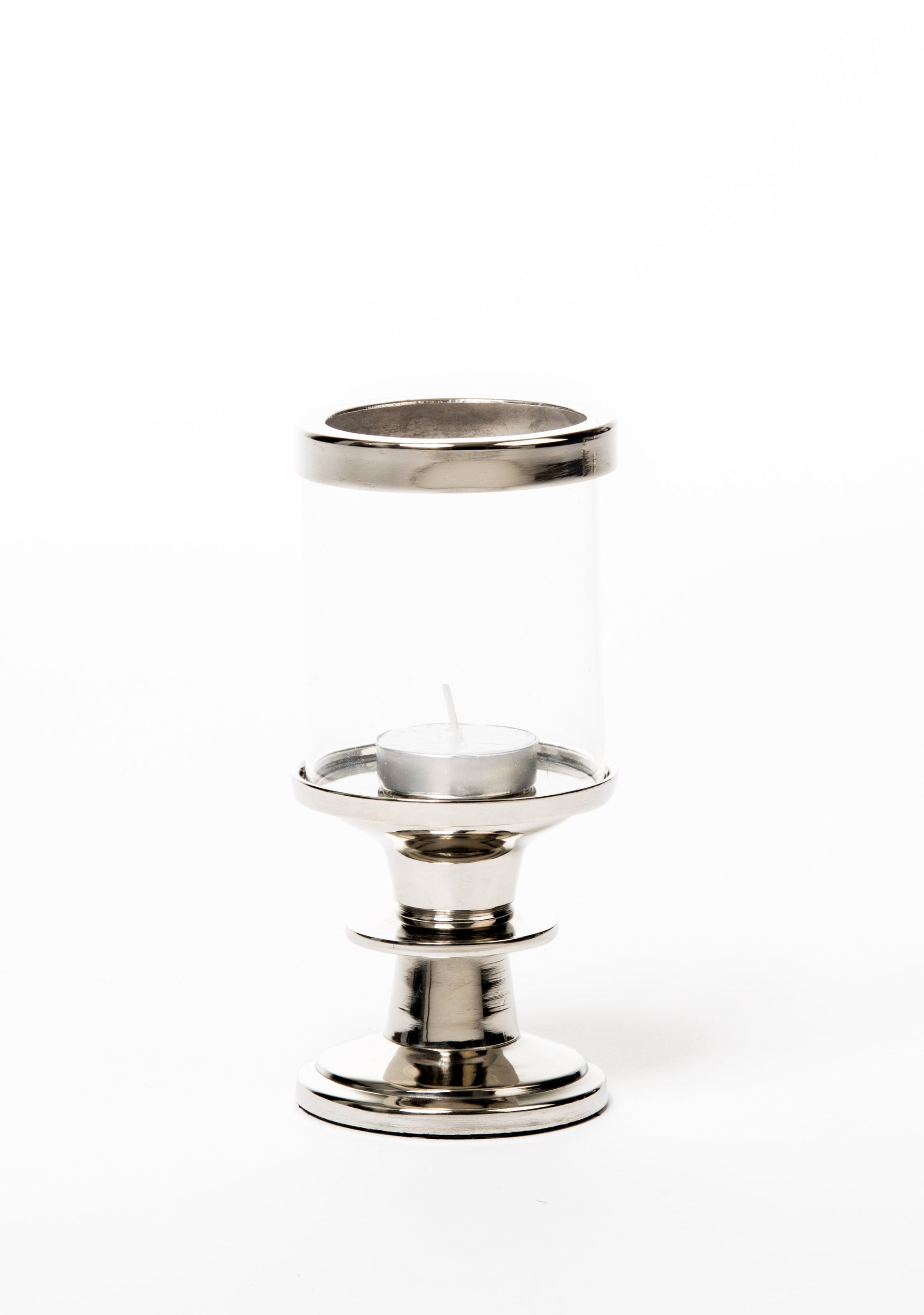 The geometric lines of this nickel-hurricane make it a chic addition for your living space. Compact, smart & classic, this piece will add class & help you magnify any space in your house or office. Works well with tea lights.