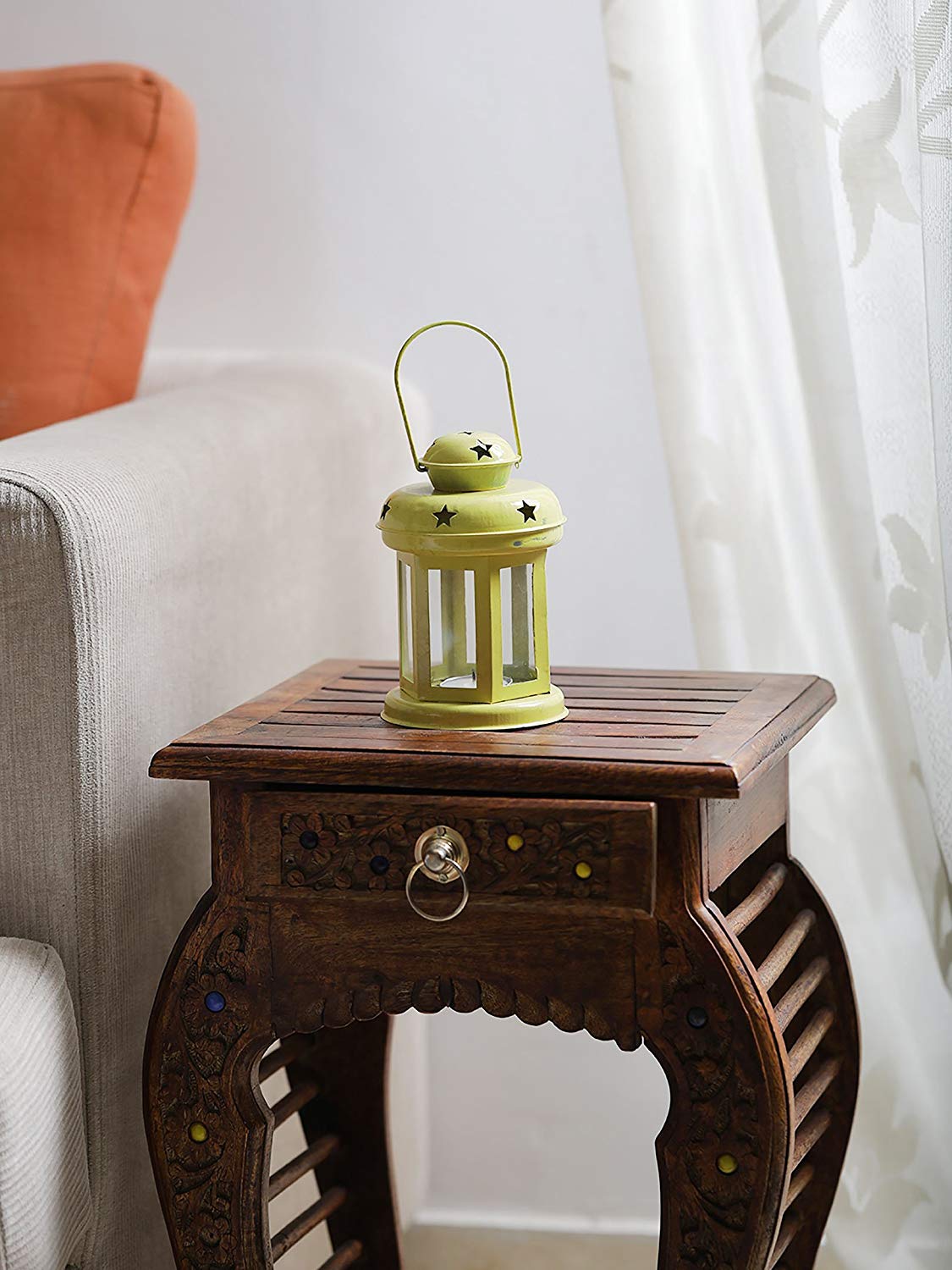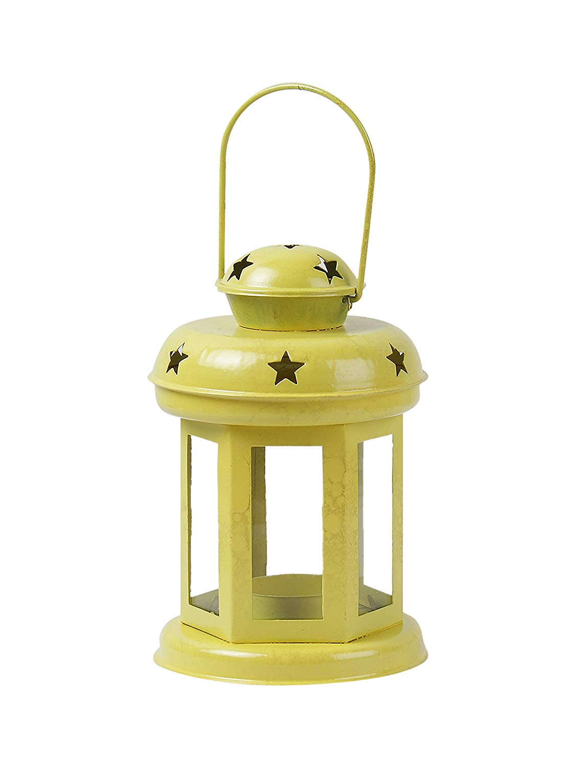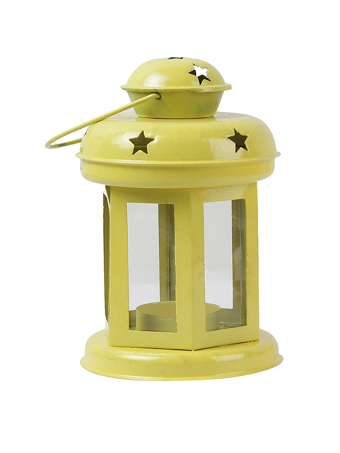 'Sammsara's' intricate star shape cut out design gives an exotic vibe to the lantern. Handcrafted perfectly, these iron & glass accent pieces add charm & quirkiness to every room. Available in 6 color options Blue, Red, Yellow, White, Gold & Black you cannot just choose one. Every piece come with a t-light, so now you can just sit back, relax & watch the serene light brighten up your room.